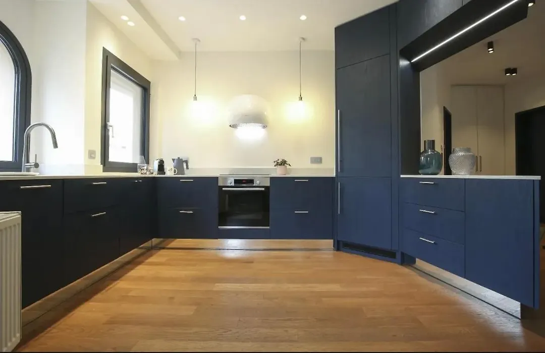 設備の整った台所で自家製の食事を作ることができます。 Crafted Stay, Modern Elegant Apartment数歩の距離のところにΤερμ. Στ. Κάτω Τούμπαςバス停があります。 テラスでリラックスすることができます。